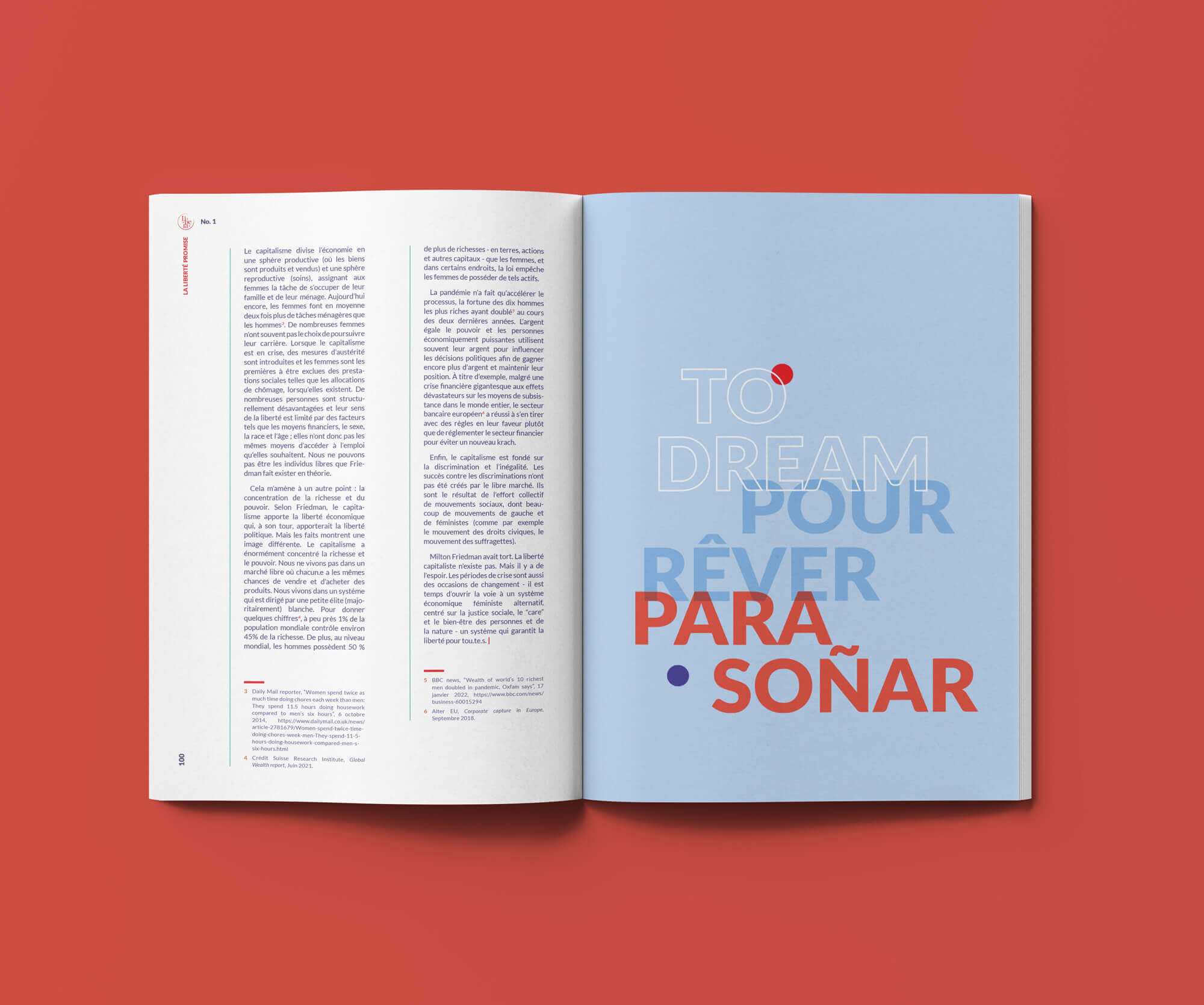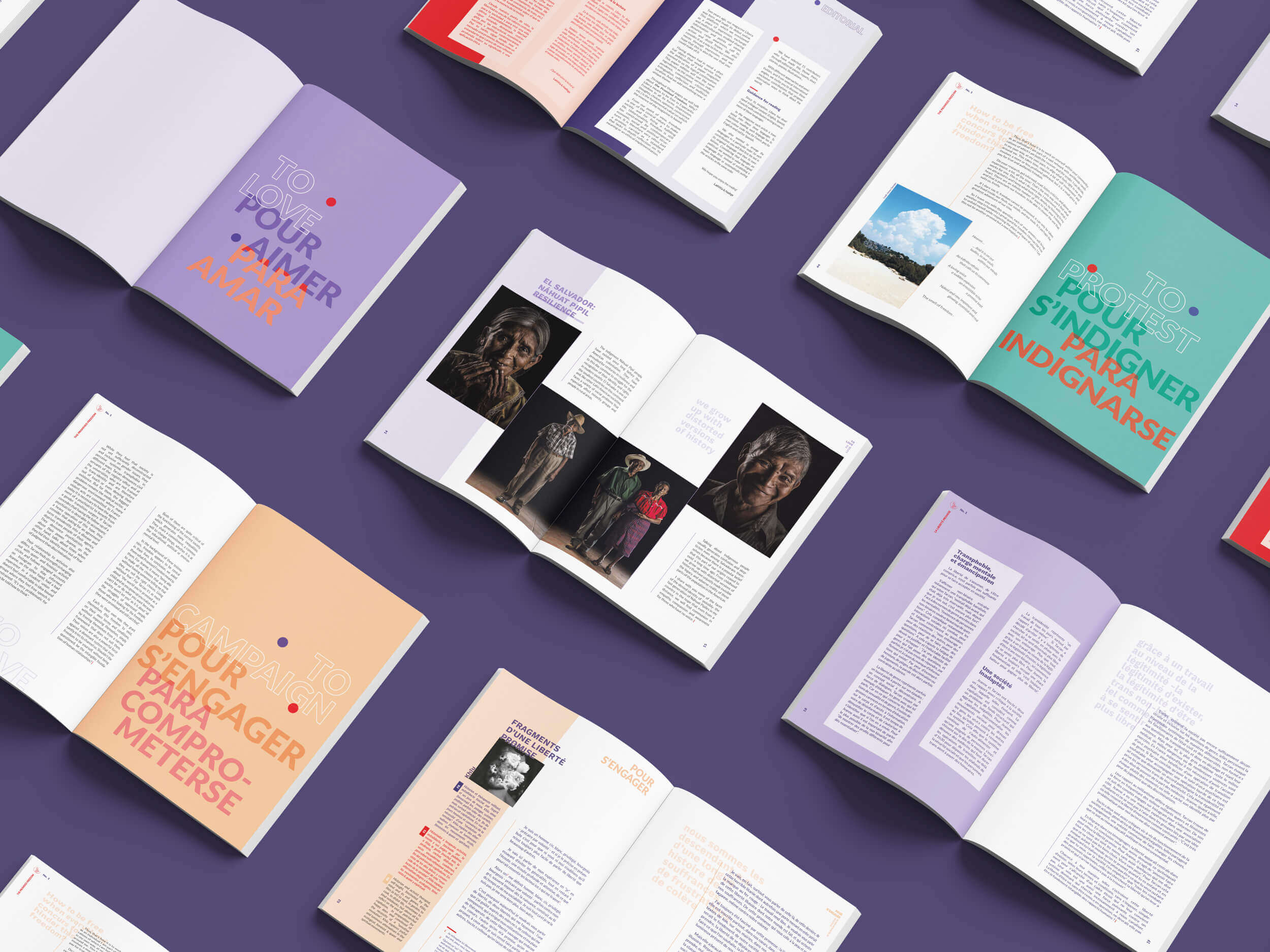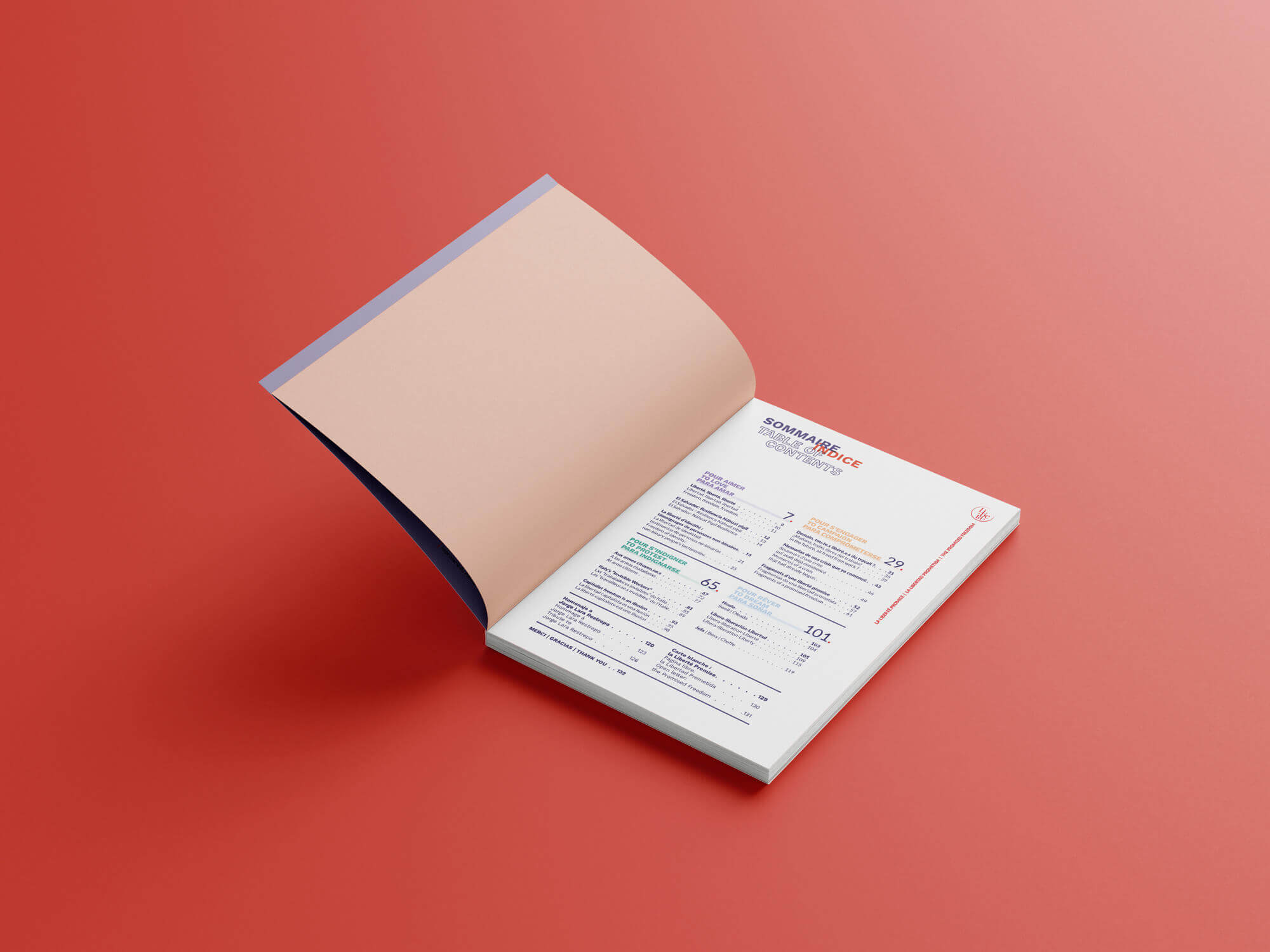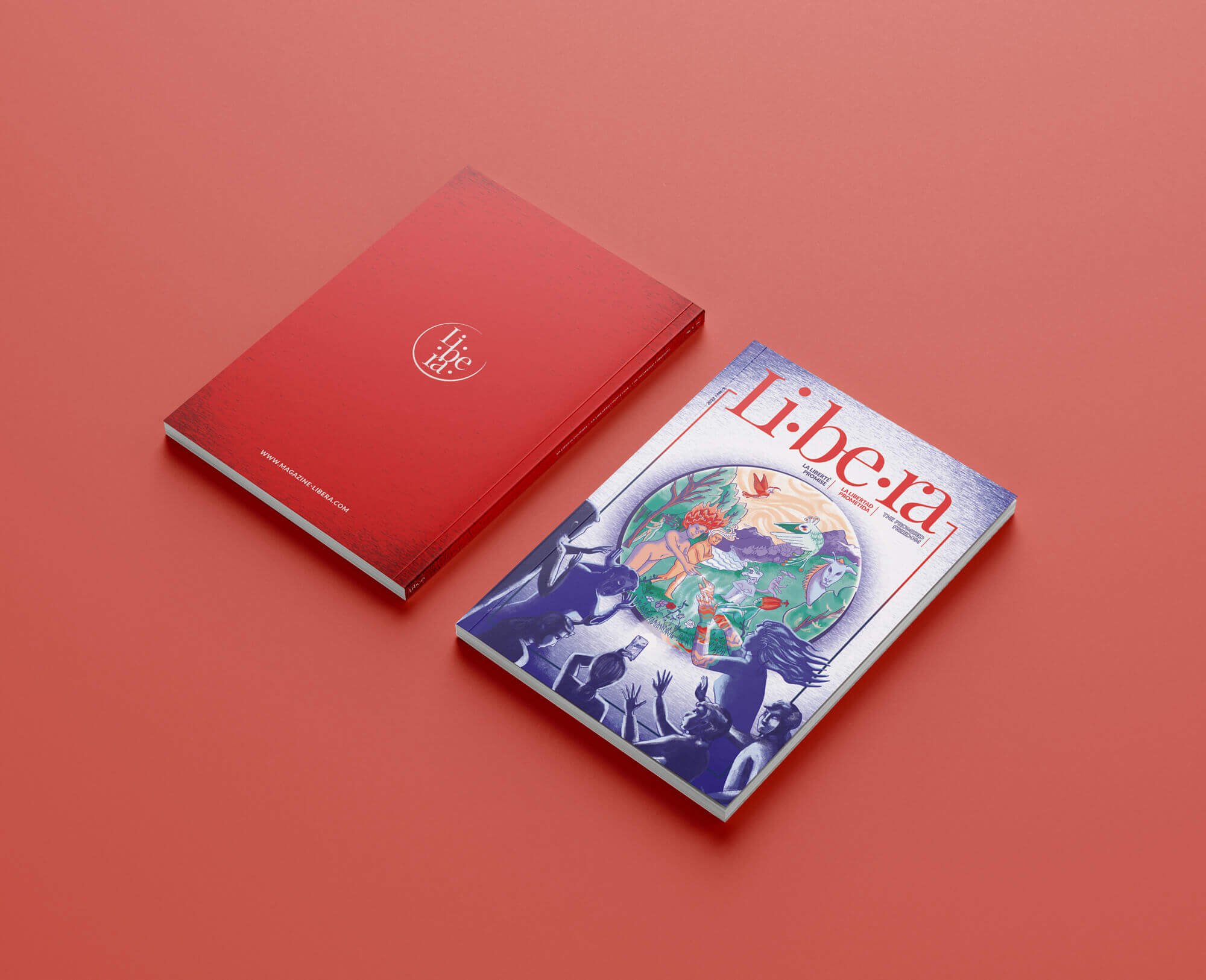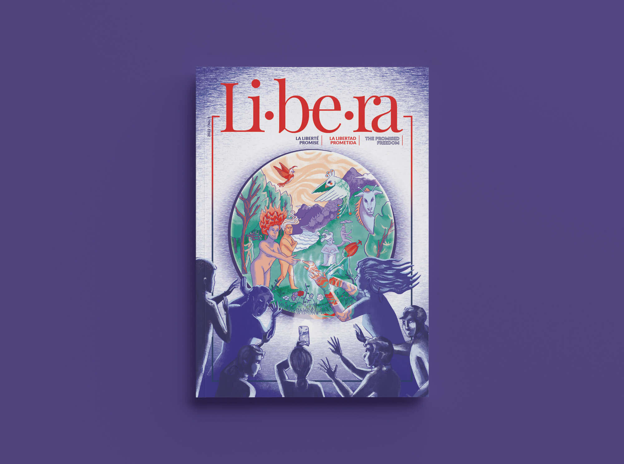 J'ai eu l'occasion de participer à la création du premier numéro imprimé de Libera, un magazine en ligne grenoblois, dont le contenu est proposé en 3 langues : français, espagnol et anglais. Pour ce projet, j'ai proposé la maquette, effectué la mise en page pour les 132 pages et réalisé l'illustration de la couverture qui représente, à ma façon, le concept de cette édition : la liberté promise.