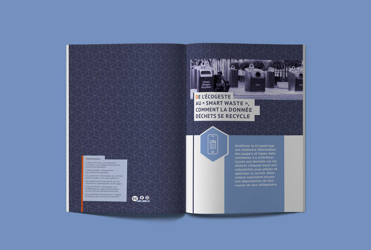 Design d’un livret en version print et web pour l’association OpenDataFrance, sur la réutilisation des données publiques dans les territoires.